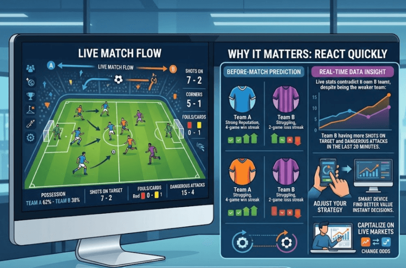 Điểm quan trọng là dữ liệu live giúp bạn phản ứng nhanh. Thị trường cá cược trực tiếp thay đổi theo từng phút. Nếu nắm bắt tốt thông tin, bạn có thể tìm ra giá trị cược tốt hơn so với trước trận đấu.