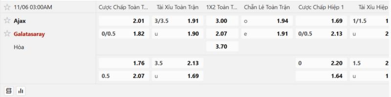 Như vậy với điểm số chênh lệch cũng như phong độ khác biệt của Ajax Vs Galatasaray sẽ dễ dàng giúp chúng ta đoán được đội nào sẽ bất bại trong trận tới. Ajax hoàn toàn bị lép vế trước đối thủ, lợi thế duy nhất của họ hiện tại là được thi đấu tại sân nhà. Dù vậy chúng tôi vẫn cho rằng Galatasaray sẽ có khả năng thắng cao hơn trong trận đối đầu ngày 6 tháng 11 này.
