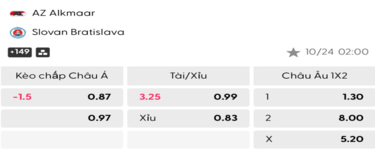 - Dự đoán tỉ số trận đấu: Alkmaar 2-1 Slovan Bratislava.