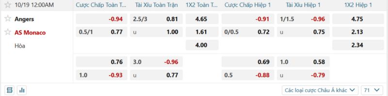 Soi kèo trước trận đấu giữa Angers Vs Monaco ngày 19 tháng 10 bởi Dafabet