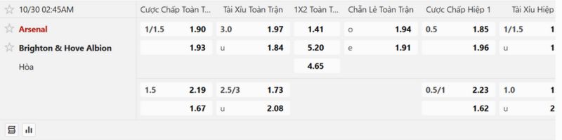 - Dự đoán tỷ số cuối cùng: Arsenal 2-0 Brighton & Hove