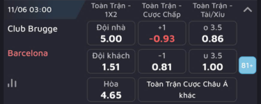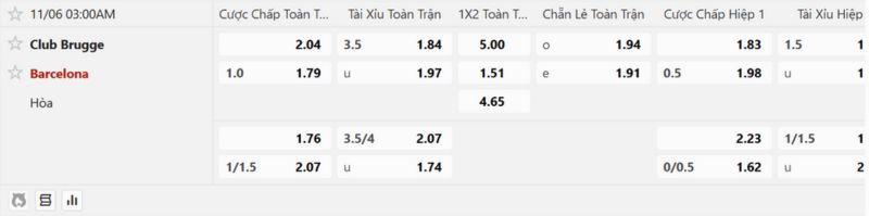 • Tỷ lệ soi kèo châu Á: chọn Barcelona thắng