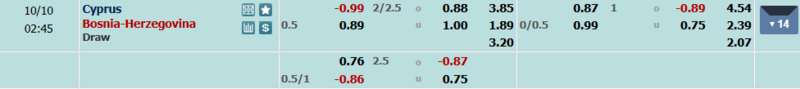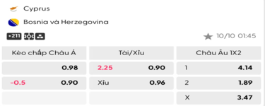 Soi kèo trận đấu giữa Đảo Síp Vs Bosnia-Herzegovina
