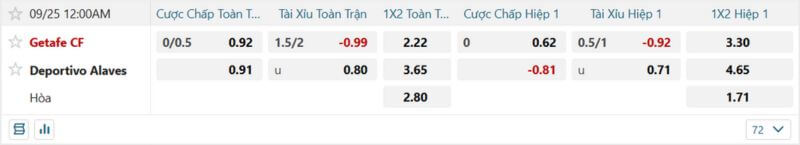 Soi kèo trận đấu giữa Getafe Vs Alaves ngày 25 tháng 9 giải La Liga
