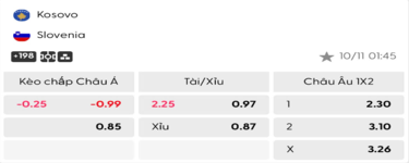 Soi kèo trận đấu giữa Kosovo Vs Slovenia