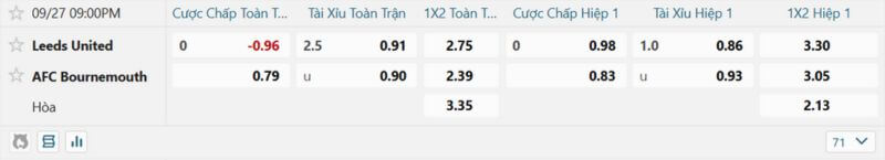 Soi kèo trước trận đấu giữa Leeds Vs Bournemouth ngày 27 tháng 9 bởi Dafabet