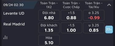 Levante Vs Real Madrid sẽ đối đầu với nhau trên sân Ciutat de València vào ngày 24 tháng 9 tới đây trong khuôn khổ giải La Liga 2025/26. Anh em đang tìm kiếm cơ hội thắng lớn cùng các phần thưởng hấp dẫn từ trận đấu? Cùng theo dõi thông tin soi kèo của Dafabet để chốt cho mình những chiếc kèo lý tưởng nhất!