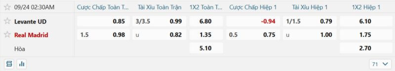 - Tỷ lệ soi kèo châu Á: Chọn Real Madrid thắng.