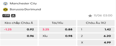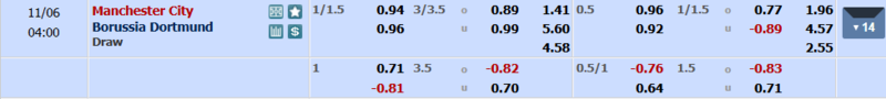 Dự đoán tỷ lệ kèo cược trận Man City Vs Dortmund từ Dafabet như sau: