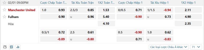 - Tỷ lệ soi kèo châu Á: chọn Man United thắng