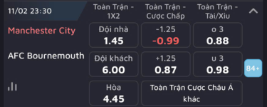 Anh em cược thủ đang cổ vũ cho đội nào? Nếu không muốn bỏ lỡ trận cầu giữa Manchester City Vs Bournemouth thì hãy truy cập vào link nhà cái không bị gãy ở phía dưới nhé!