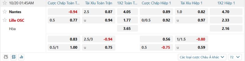 Soi kèo trận cầu Nantes Vs Lille ngày 20 tháng 10 bởi Dafabet