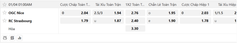 - Tỷ số cuối cùng được dự đoán: Nice 1-2 Strasbourg