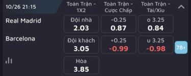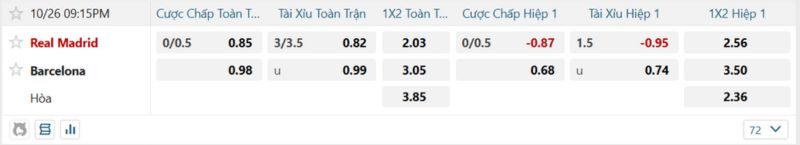 - Tỷ lệ soi kèo châu Á: chọn Real Madrid thắng