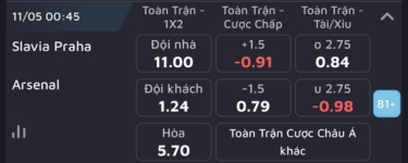 Dafabet đã đưa ra nhận định soi kèo Slavia Praha Vs Arsenal như sau: