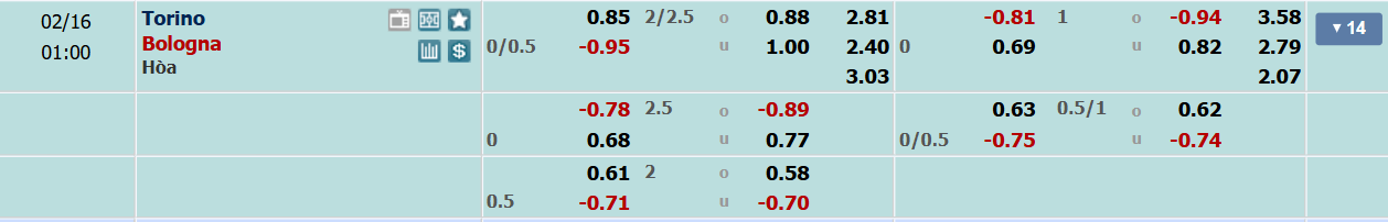 - Dự đoán kết quả chung cuộc: Torino 1-1 Bologna.