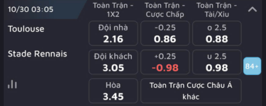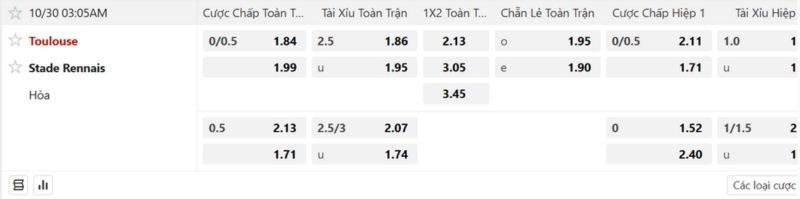 Thông tin kết quả soi kèo trận đấu Toulouse Vs Stade Rennais tại Dafabet