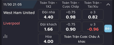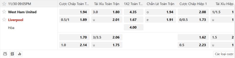 West Ham Vs Liverpool sẽ đối đầu với nhau trên sân Olympic vào ngày 30 tháng 11 tới đây trong khuôn khổ giải Ngoại hạng Anh. Anh em đang tìm kiếm cơ hội thắng lớn cùng các phần thưởng hấp dẫn từ trận đấu? Cùng theo dõi thông tin soi kèo của Dafabet để chốt cho mình những chiếc kèo lý tưởng nhất!