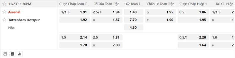 - Tỷ lệ soi kèo châu Á: Chọn Arsenal thắng.