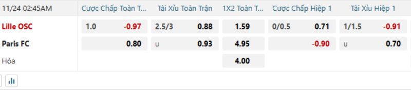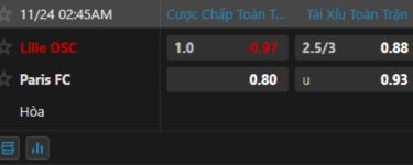 • Tỷ lệ soi kèo Châu Á: chọn Lille thắng kèo.
