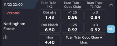Lịch thi đấu vòng 12 tiếp theo ghi nhận sự đối đầu của Liverpool Vs N Forest trên sân Anfield. Liệu đây có phải là chiến thắng tiếp theo của Liverpool để tăng bậc hay N Forest sẽ một màn bứt phá bất ngờ? Cùng theo dõi bài viết soi kèo Dafabet dưới đây để có cơ hội nhận thưởng, khuyến mãi hấp dẫn với những chiếc kèo xịn sò!