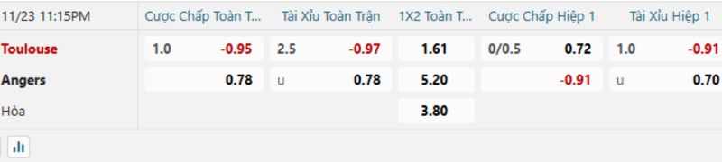 Soi kèo trận đấu giữa Toulouse Vs Angers
