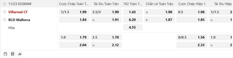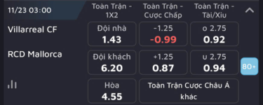 Cuộc đối đầu giữa Villarreal và Mallorca đang thu hút sự quan tâm của người chơi kèo châu Âu lẫn châu Á khi phong độ của hai đội có sự đối lập rõ rệt. Villarreal chơi ngày càng vào guồng, trong khi Mallorca vẫn loay hoay với sự thất thường khiến họ khó tạo bất ngờ. Hãy đăng ký tài khoản tại Dafabet để theo dõi trận đấu cũng như giành lấy cơ hội gom “lúa tươi” cho mình.